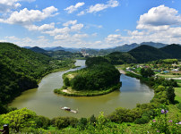 강원도 영월군에 있는 한반도를 닮아 ‘한반도 지형’이라 불리게 되었으며, 사계절마다 특색 있는 경관을 보여 주는 명승지이다.