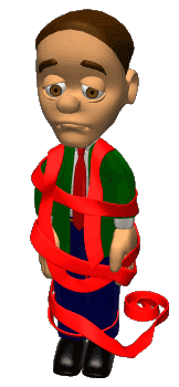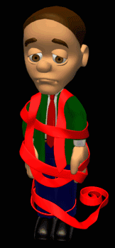 Man Covered Red Tape
